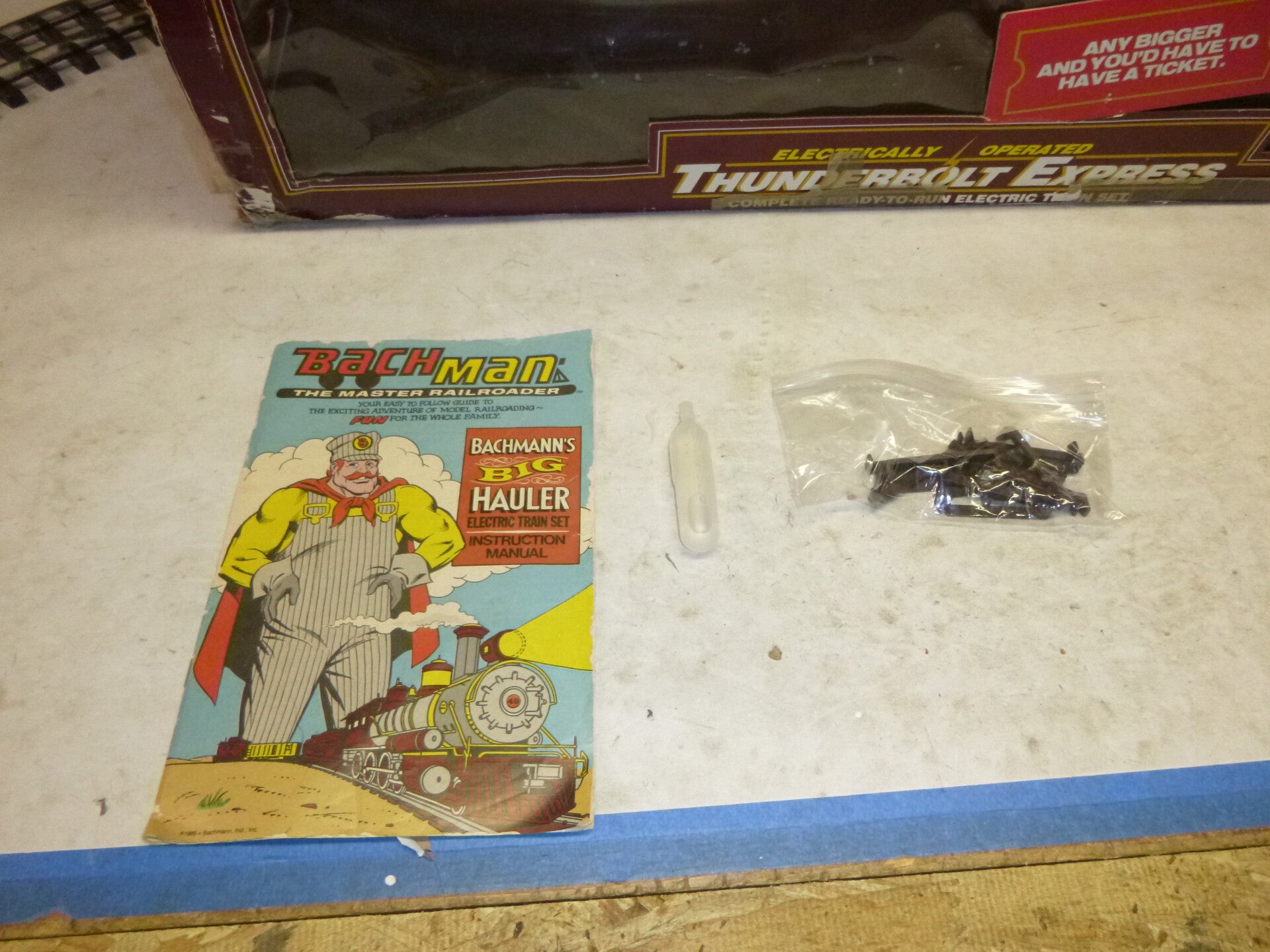 Tested and runs perfect. Headlight works. Has smoke but doesn't smoke sometimes. Transformer powerpack works good. Tender has the sound unit with speaker, and comes with a 9 volt battery already installed. Instructions included. Tracks were all cleaned and are ready to assemble. Track clips are included if you want to use. Car and caboose are in great condition. The cars are equipped with operating knuckle couplers. No tools required for set-up.