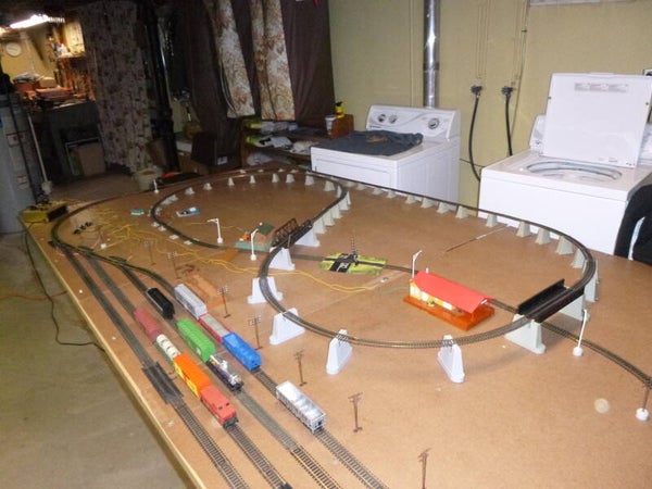 HO DC 10x6 elevated train set layout w/accessories, freight yard