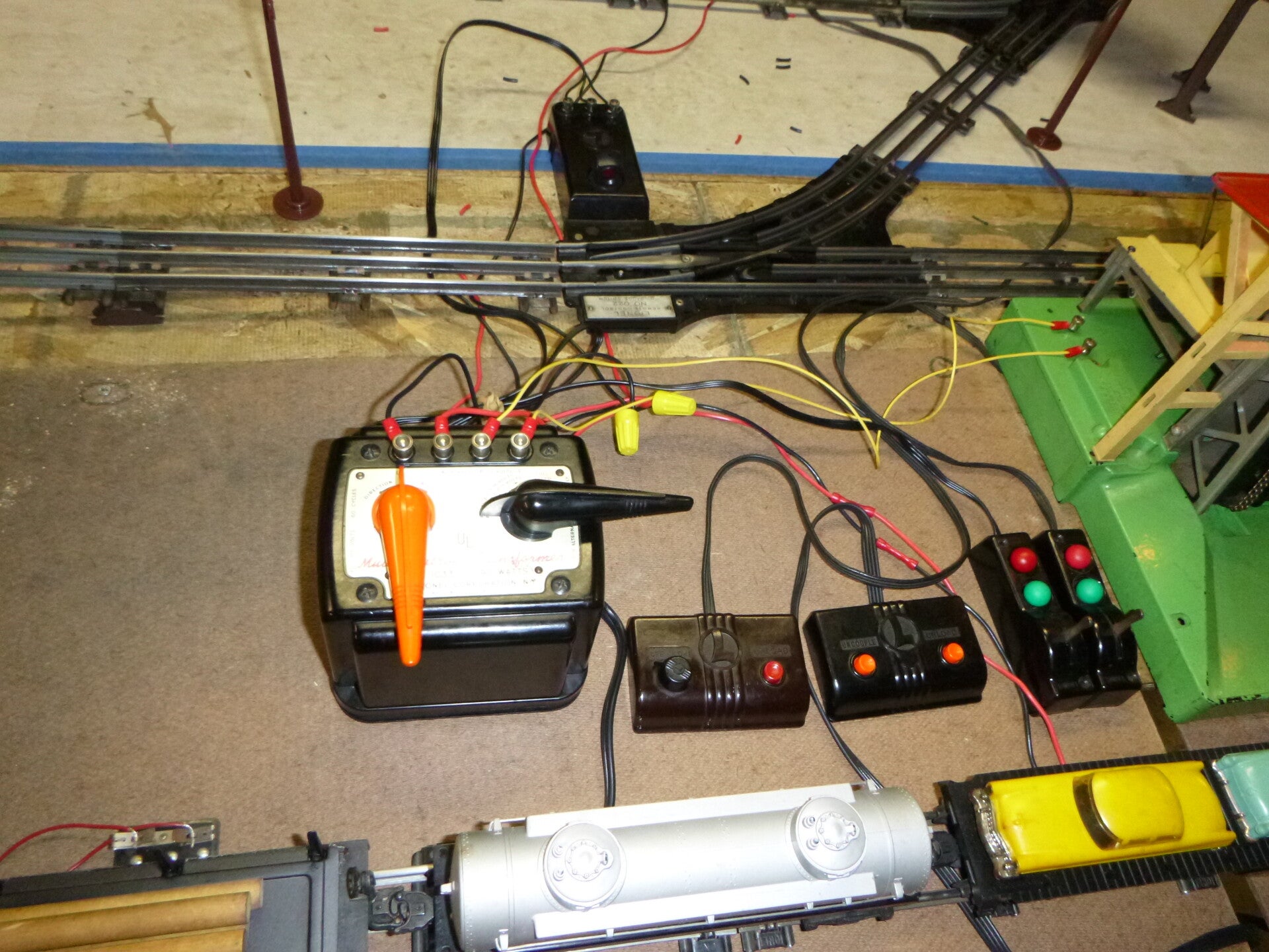 Everything has been gone through, well tested and works great. Engine smokes. Whistle works well. Cars are all in very good well preserved condition. The Lionel #164 log loader is the star of the show. It has been disassembled, motor rebuilt, mechanism cleaned and oiled, relay for dump on backside cleaned and lubed, new light bulbs, and controller disassembled and refurbished inside. Tracks are O gauge 031 curve radius and are all cleaned on top. Both 022 switches have been reconditioned. Also include are the operating gateman, operating crossing gate, pair of lighted bumpers, a 18" Marx truss bridge, trestle set, telephone pole set, and Lionel 1033 transformer with brand new whistle diode disc. Layout size is 4 feet by 53 inches.